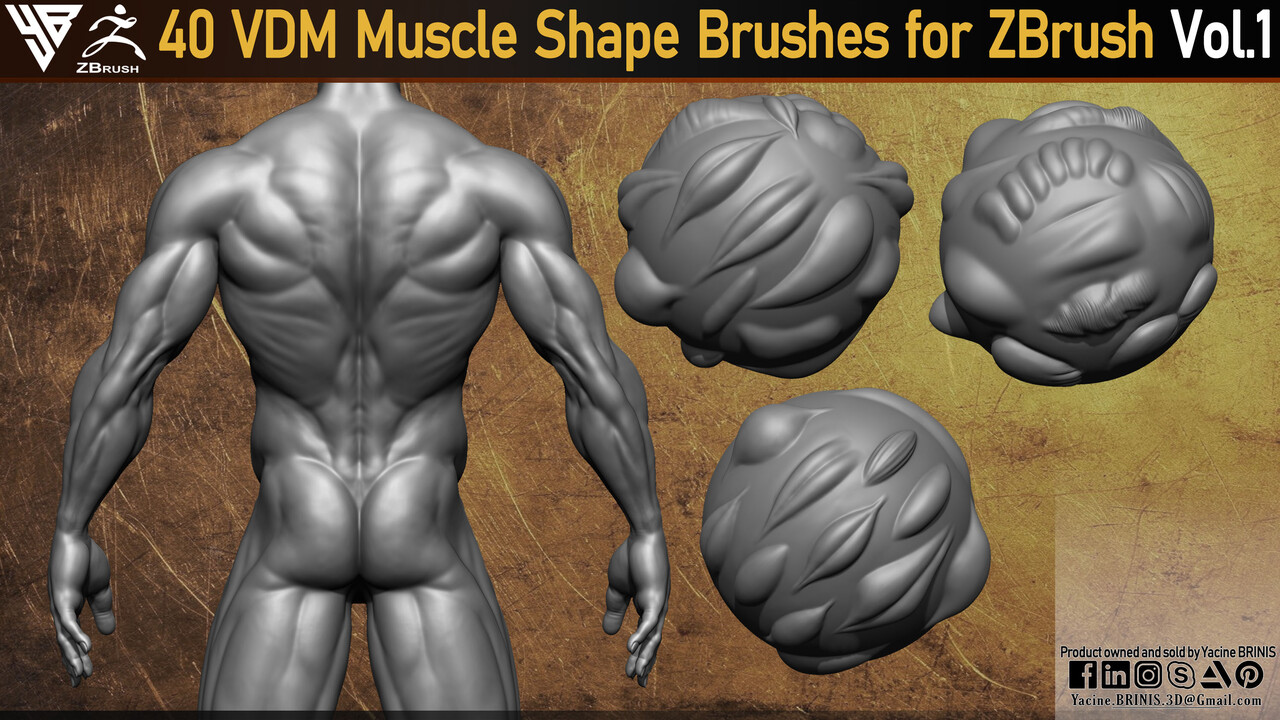 40 VDM Brushes of Muscle Shapes to use in ZBrush on human Anatomy (Male and Female)